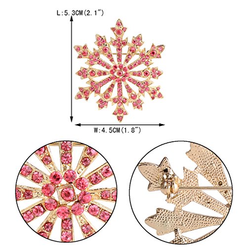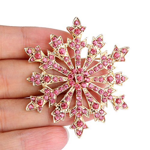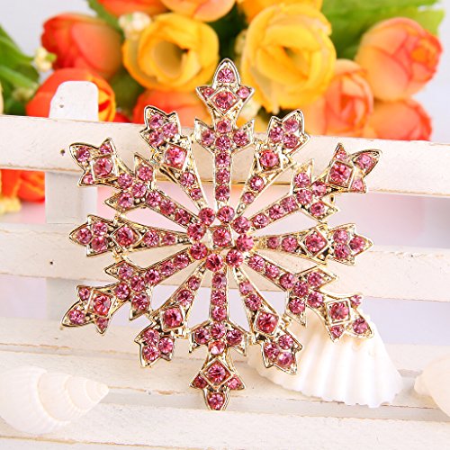 EVER FAITH Women's Austrian Crystal Holiday Gifts Winter Snowflake Brooch Pink Gold-Tone