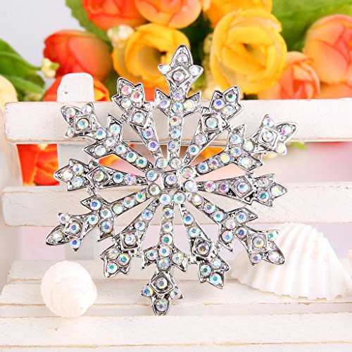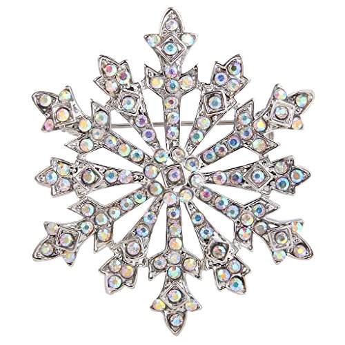 EVER FAITH Women's Austrian Crystal Holiday Gifts Winter Snowflake Brooch Iridescent Clear AB Silver-Tone