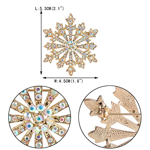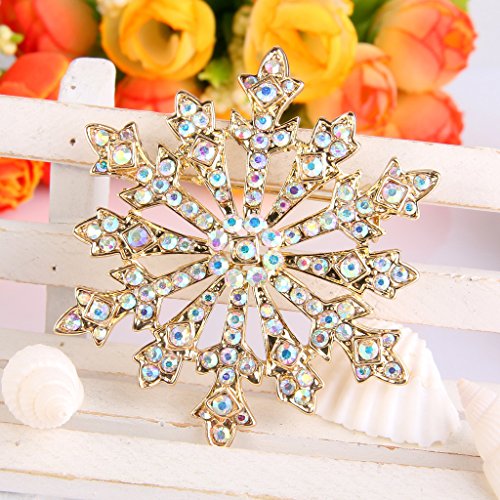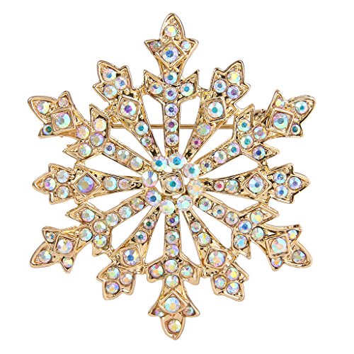 EVER FAITH Austrian Crystal Holiday Gifts Snowflake Brooch Gold-Tone Iridescent Clear AB Gold-Tone