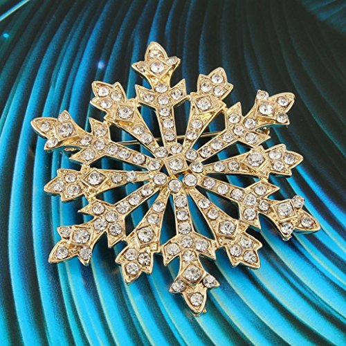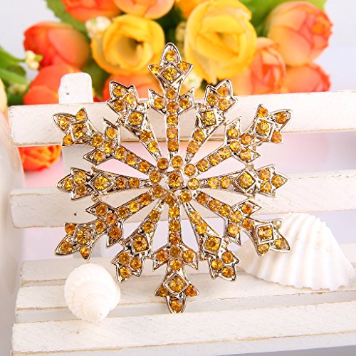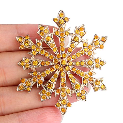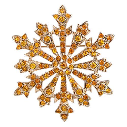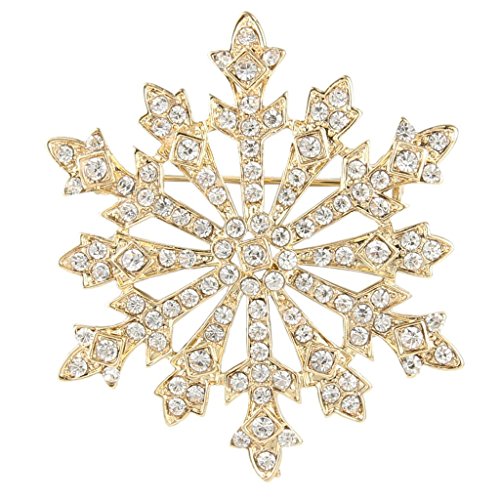 EVER FAITH Women's Austrian Crystal Holiday Gifts Winter Snowflake Brooch Yellow Gold-Tone