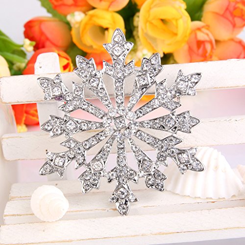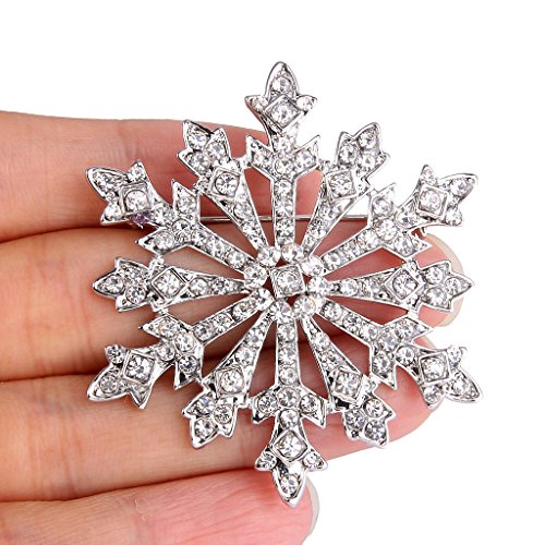 EVER FAITH Women's Austrian Crystal Holiday Gifts Winter Snowflake Brooch Clear Silver-Tone