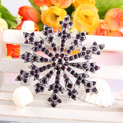 EVER FAITH Women's Austrian Crystal Holiday Gifts Winter Snowflake Brooch Purple Silver-Tone