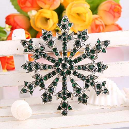 EVER FAITH Women's Austrian Crystal Holiday Gifts Winter Snowflake Brooch Green Silver-Tone