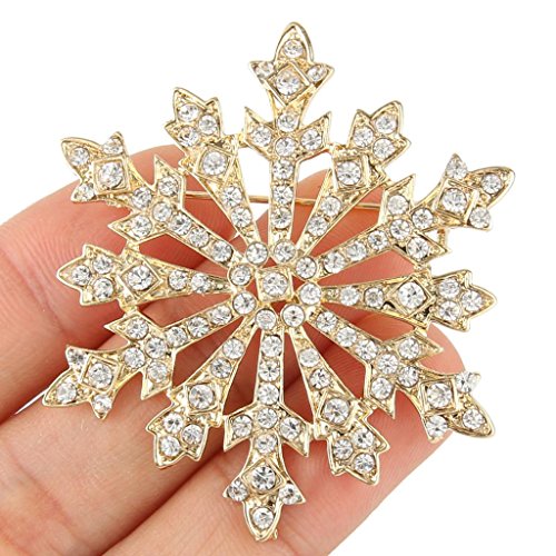 EVER FAITH Women's Austrian Crystal Holiday Gifts Winter Snowflake Brooch Clear Gold-Tone