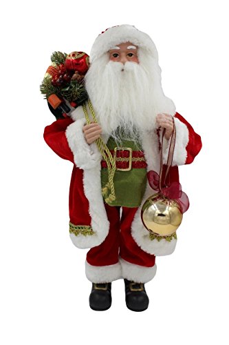 17.5-inch Standing Santa Claus Christmas Figure Holding Gift Sack and Ornament