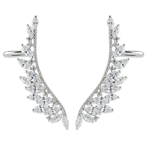 This is a pair of beautiful ear cuff earrings,they are craft with silver plated wire,which is nickel free.Insert with stunning white cubic zirconia crystals makes you shining like stars. Add the wow factor to your everyday chic looks with a pair of unique and elegant silver CZ ear crawlers. The design is made to gently caress the outer rim of your ear and they are worn facing upwards and put through the piercing on the bottom of your ear lobe. There is no need for multiple piercings with ear cuff jewelry. This listing is for one pair of earrings.Feature