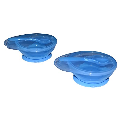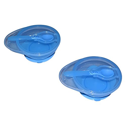 -. Title : Sharebear Baby Suction Bowl with Built in Spoon Holder on Top of Lid. Set of 2 Choice of Blue or Pink. FDA Approved, BPA Free, Dishwasher Safe, Shatterproof and Spillproof.