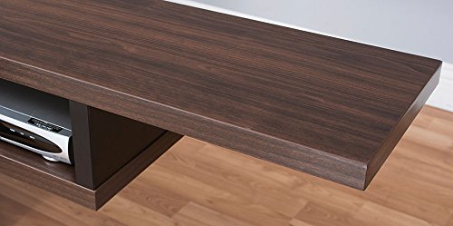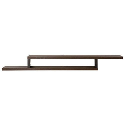 - Feature : Colonel Walnut surfaces and Black finished supports / Perfect for the storage and display of your favorite items / Asymmetrical design has a "floating shelf" illusion with black accents to create a sleek, contemporary appearance / Holds 2 audio/video component and a sound bar on the top shelf to accompany a wall mounted television up to 80" / Concealed wire management helps contain unsightly cables / Easy assembly and standard wood stud wall installation with included mounting hardware. Unit holds up to 70 Lbs. / Compartment Dimensions: 39.44" W x 5.5" H x 11.75" D