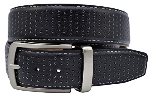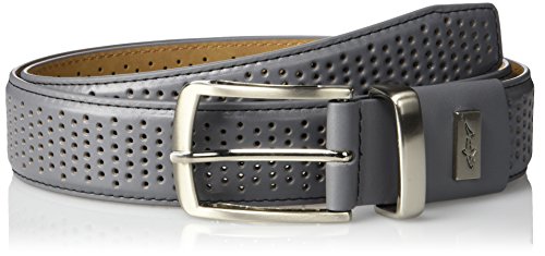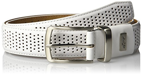 Men's 35 mm wide Greg Norman ultimate performance golf belt with mini perforations. Padded and edge stitched. Shark logo at buckle end.Feature