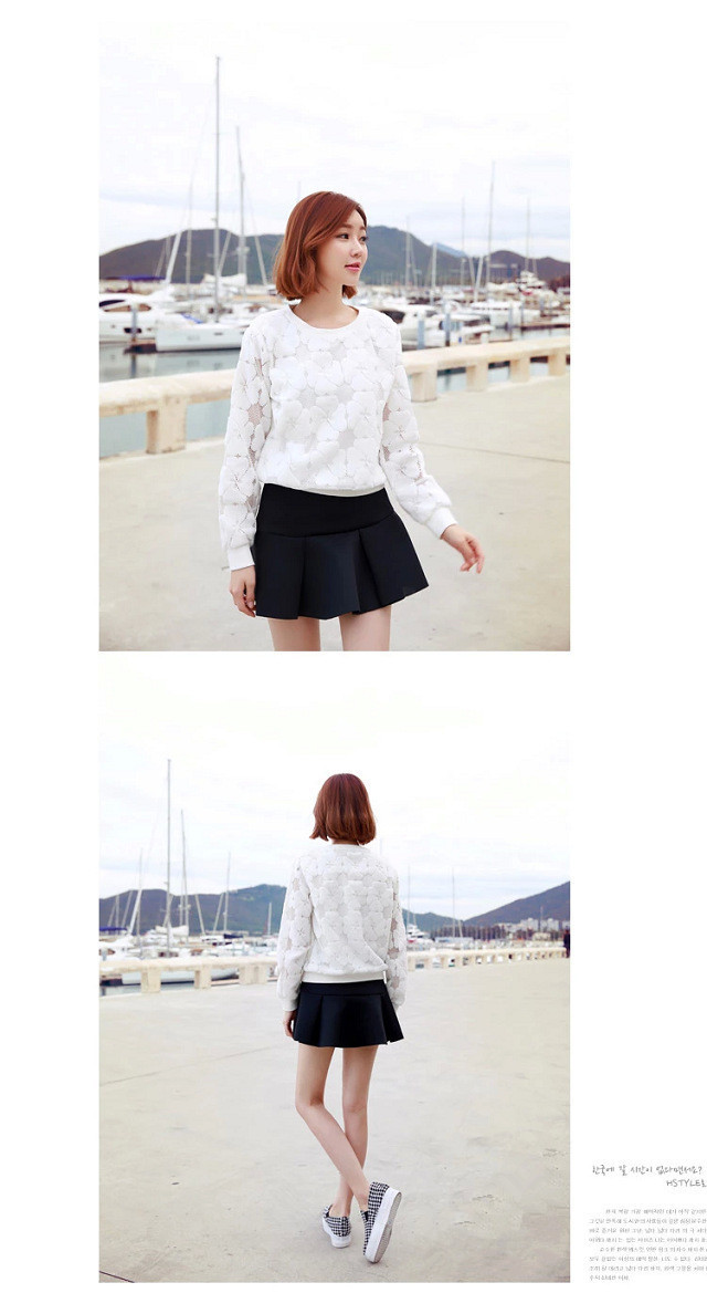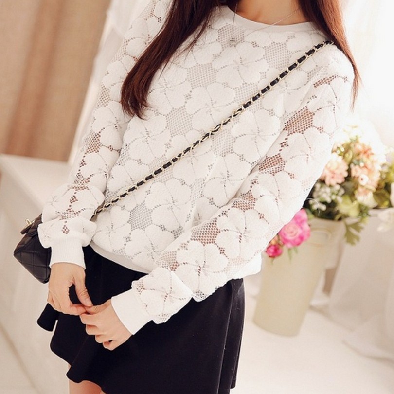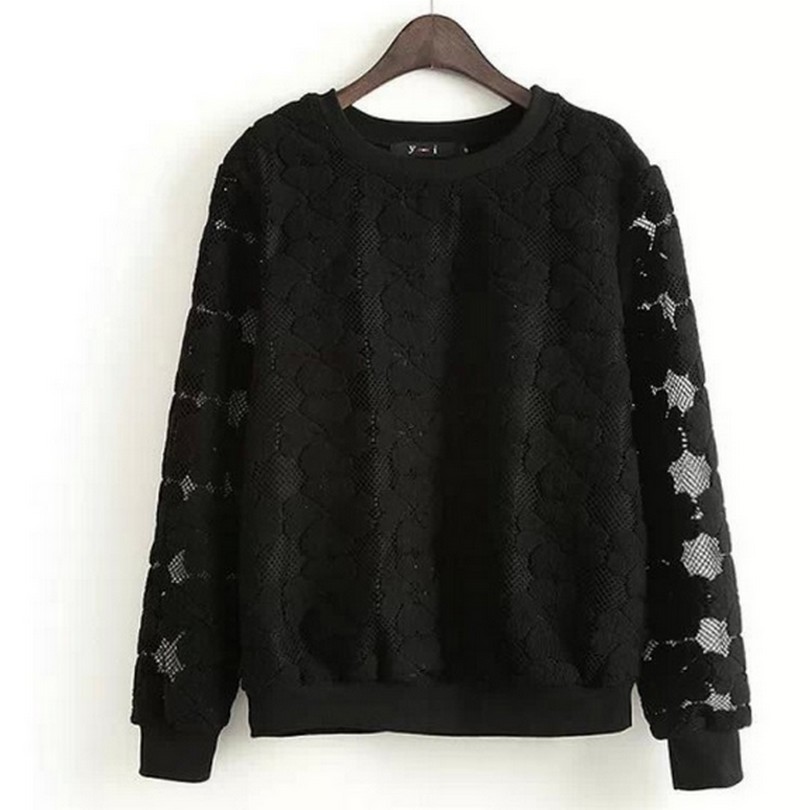New 2017 Round Neck Hedging Sweatshirt Women Lace Hollow Out Female Hoodies All-Match Bottoming Sudaderas S~XL Moletom Feminina