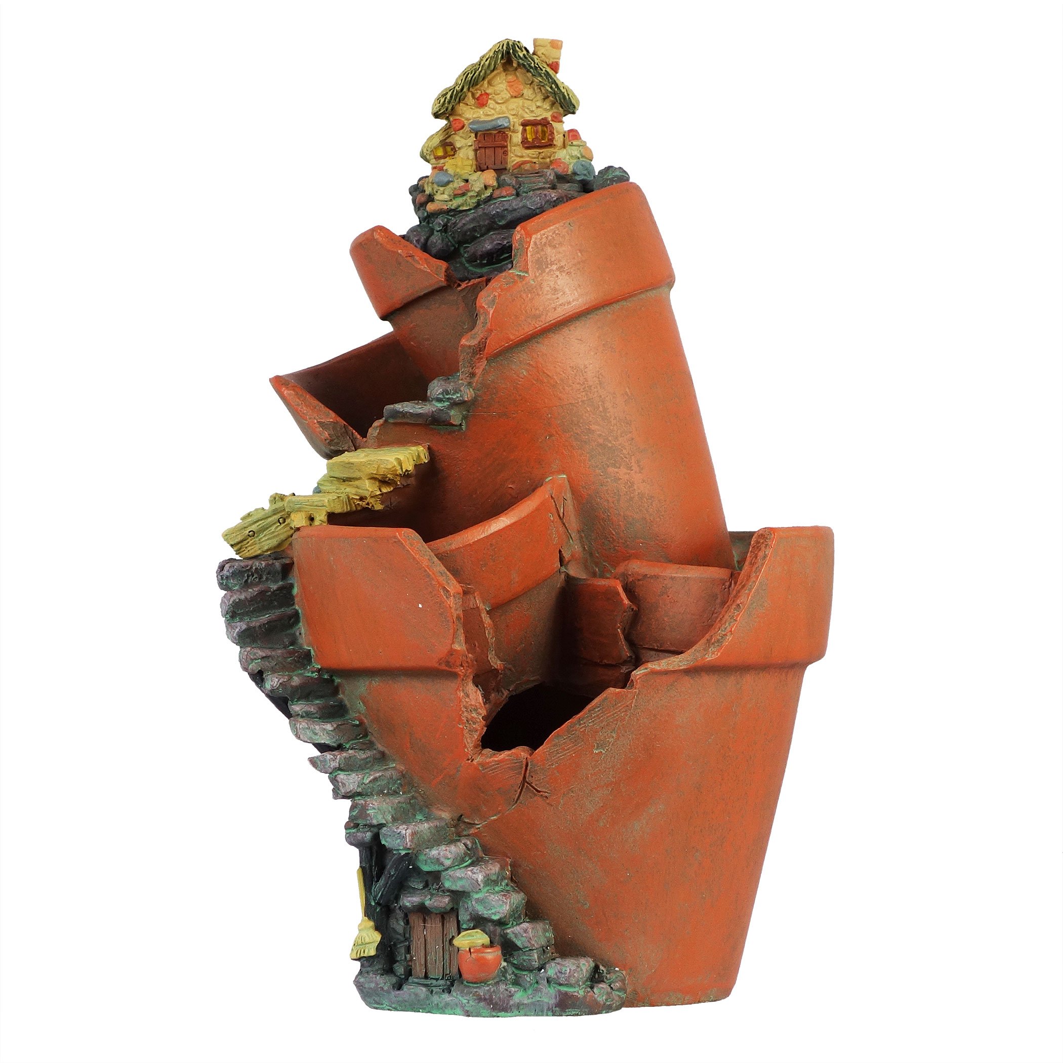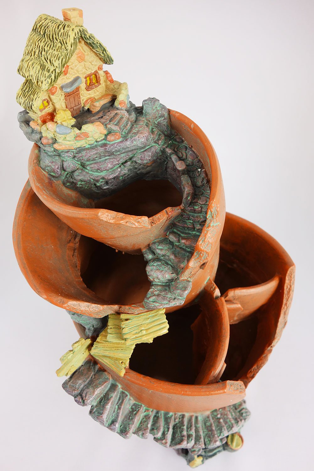 A dangerous staircase also climbs spirally around the flowerpot.