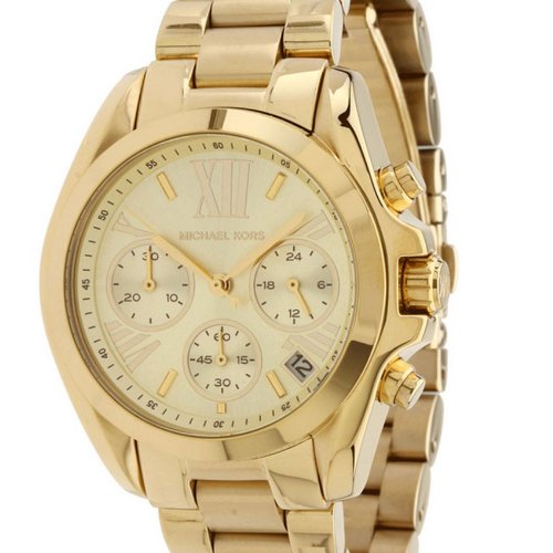 Michael Kors Bradshaw Mid-Size Chronograph Gold Tone Stainless Steel Case and Bracelet Gold Tone Dial Date Display Women