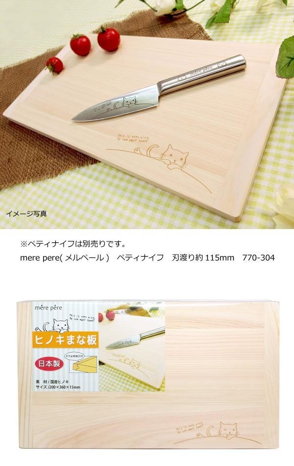 | ネコのイラストがかわいいヒノキのまな板。 |