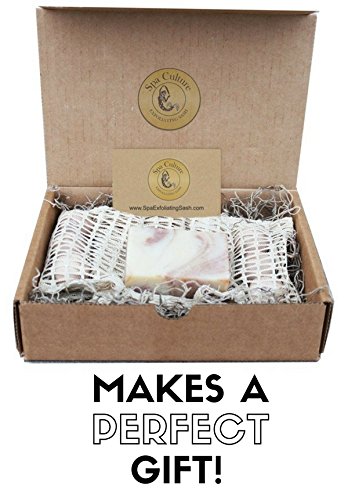 Spa Culture Loofah Back Scrubber, Exfoliating Cloth Natural Back Scrubber for Men and Women Use in Shower or Bath - Receive in artisan Gift Box with free bar of handmade organic soap
