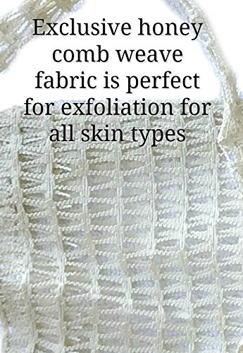Designer Quality. XL 4x45 in. Double stitch for quality and durability. Reaches every inch of your body. Exclusive Honey Comb weave fabric delivers perfect exfoliation for all skin types. 100% natural wood massaging beads designed in a generous 45" long sash with wide handles.