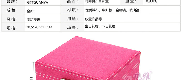 绒布首饰盒 戒指项链太阳镜 公主收拾收纳化妆珠宝