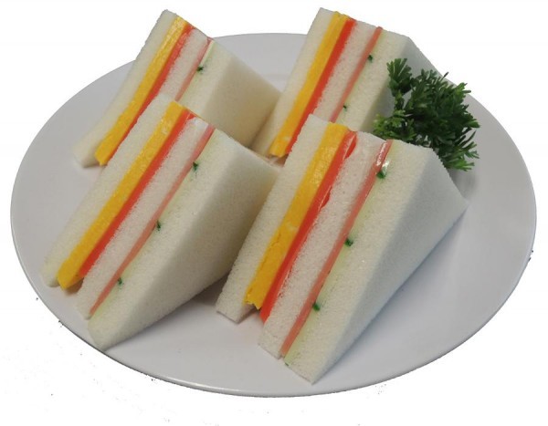 サンドイッチの定番!ハム・エッグ・トマトなどを挟んだミックスサンドです!お部屋のインテリアや、カフェ・定食屋さんのディスプレイ用としてもおすすめです♪※職人手作りのため、形状や色味、風合いは写真と若干異なる場合がございます。また、食品サンプルとお皿は接着されておりません。 |