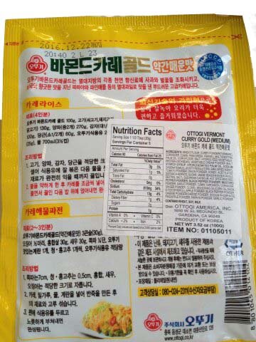 Ottogi Vermont Curry Gold (Medium Hot) 바몬드카레 골드 약간매운맛 100g (3.53oz)