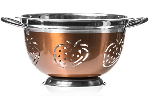5 Quart Deep Stainless Steel Colander - Chef's Food Strainer w/ Strawberry Cutout (Copper Brushed Finish)