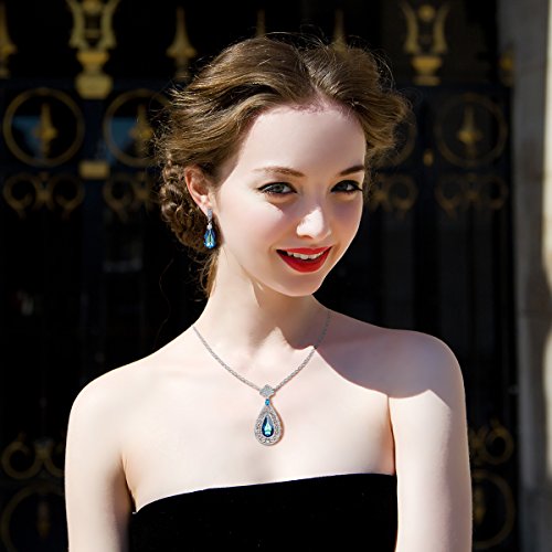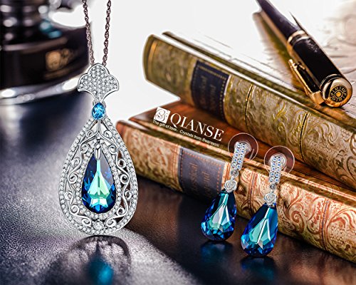 ♥SPECIFICATION♥ For pierced ears. Made with authentic Swarovski Crystal. Zinc Alloy, Lead-Free & Nickle-Free, passed Swiss SGS Inspection Standard, no harm to health. | Chain Length 17 + 2 inches, Pendant Length 2.6 inches, Pendant Width 1 inch. Earring Length 1.6 inch, Earring Width 1/2 inch.