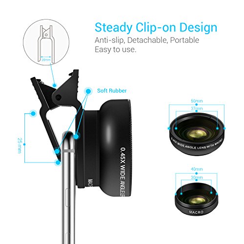 61% OFF: Super Wide 0.45X Wide Angle Lens + a 12.5X Macro Lens. With the 0.45X wide angle lens,broaden a wider vision, perfect for taking pictures of larger ranges, especially ideal for group shots , which can hold a large group of people in one photograph perfectly. The macro lens is great for taking picture of a tiny object in detail. With it, the Whole World Scenery, taken in your Cell Phone.