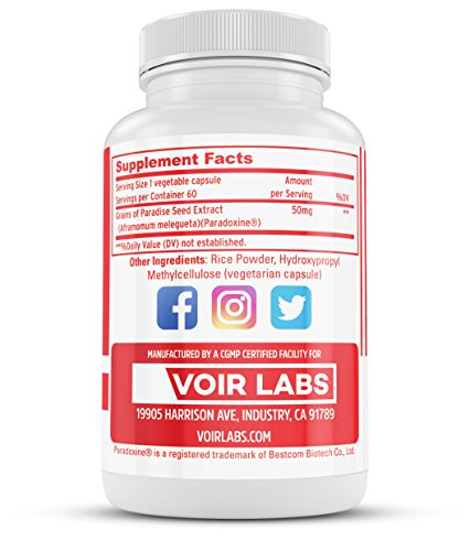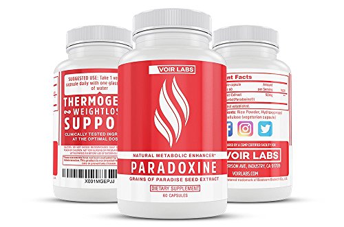 -. Binding : Health and Beauty -. Brand : Voir Labs -. Feature : POWERED BY SCIENCE: The metabolic benefits of Paradoxine® (Grains of Paradise Seed Extract) have been confirmed in numerous human clinical trials. Investigators found that intake of 30 mg grains of paradise seed extract resulted in a 97 calorie-per-day increase in rate of metabolism. / CLINICALLY DOSED INGREDIENTS: Unlike other brands, we never underdose our supplements. Paradoxine® contains the optimal dose of grains of paradise seed extract (50 mg). / TRANSPARENTLY FORMULATED: We believe that you deserve to know what's inside the capsule. That's why we never use proP.R.Ietary blends in our formulas. With Voir Labs, what you see on the label is what you get. / PRODUCT INTEGRITY: We never cut corners when it comes to the quality of our products, even if it means getting every single batch tested by a third-party laboratory. Our ingredients are always freshly sourced at the time of production. All of our supplements are proudly manufactured in the USA. / SATISFACTION GUARANTEED: We stand behind our products with a 30-day money back guarantee. If you are not completely satisfied with any Voir Labs product, we will help you resolve your concern or provide a full refund. -. IsAdultProduct : 0 -. Label : Voir Labs -. Manufacturer : Voir Labs -. MPN : 10089357 -. PackageQuantity : 1 -. PartNumber : 10089357 -. ProductGroup : Health and Beauty -. ProductTypeName : HEALTH_PERSONAL_CARE -. Publisher : Voir Labs -. Studio : Voir Labs -. Title : Voir Labs Paradoxine - Grains of Paradise Seed Extract - Natural Metabolic Enhancer - Stimulant Free Thermogenic Fat Burner Weight Loss Supplement - 60 Veggie Pills