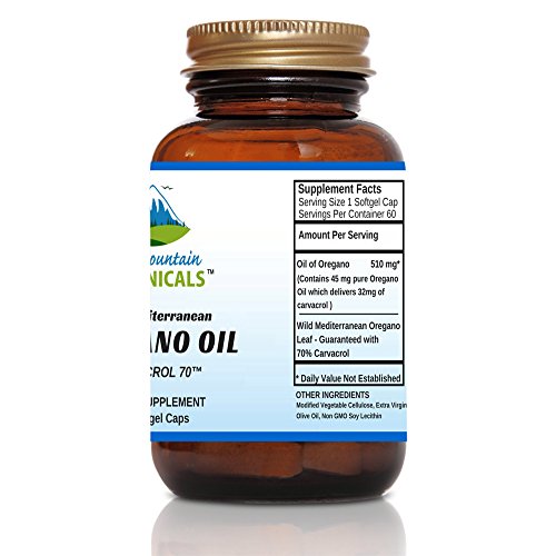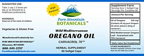 High Potency Wild Oregano Oil - 60 Vegetarian Capsules – Now with 510mg Mediterranean Oil of Oregano (70% Carvacrol) by Pure...