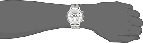 -. Feature : Polished stainless steel watch featuring silver-tone dial with slim stick markers and three subdials / 42 mm stainless steel case with mineral dial window / Swiss quartz movement with analog display / Stainless steel mesh bracelet with deployant-clasp closure / Water resistant to 50 m (165 ft)
