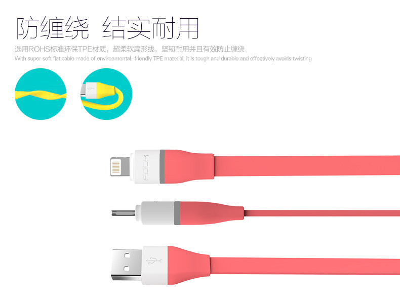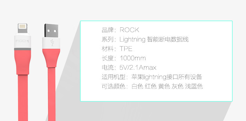 Name :  Original ROCK AUTO DISCONNECT LED Lightning Cable iPhone 5 6 5S iPad