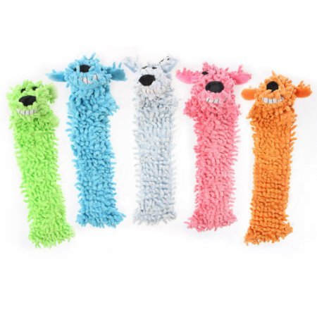 Product Description The Walmart Loofa Dog Toy provides canine pets with a fun way to play fetch and tug-of-war with their owners. It squeaks when squeezed and is floppy and plush to make it easy for dogs to bite. This squeaky dog toy comes in a variety of colors. 0