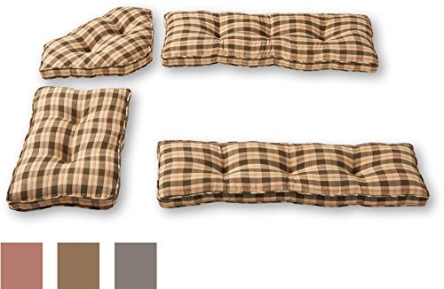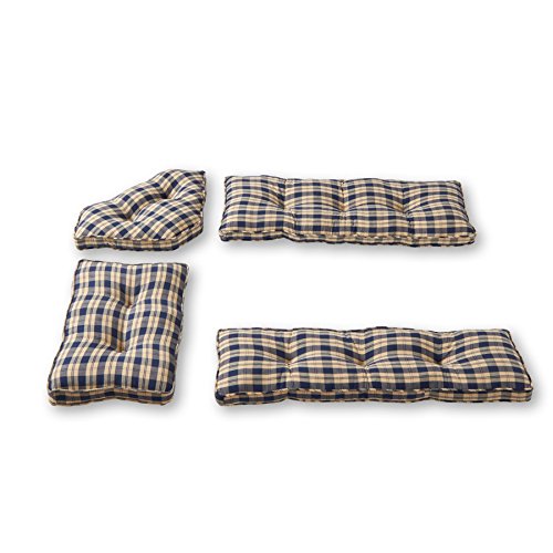 Add a stylish and contemporary Country accent to your breakfast nook furniture with these cushion sets. Overstuffed with 100-Percent soft polyester fill for added comfort, strength and durability.Non Skid Bottom prevents slipping. Made in China. Tufted with circle tack construction. Made fron 100-Percent Cotton fabric. Spot clean. Cushion Dimensions: SHORT BENCH: 26-inch L by 14-inch W, LONG BENCH: 41-inch L by 14-inch W, FREE STANDING TRESTLE BENCH: 39 by 13-inch W, CENTER CORNER CUSHION: 24-inch Across Back, 16-inch Deep.PLEASE NOTE: This is a special size nook set. Please measure your nook to be sure it is correct fit. Cushion dimensions are +/- 2 inches. Please note product will arrive in a slightly compressed state; please allow a few days for product to expand to final size listed in description.Feature