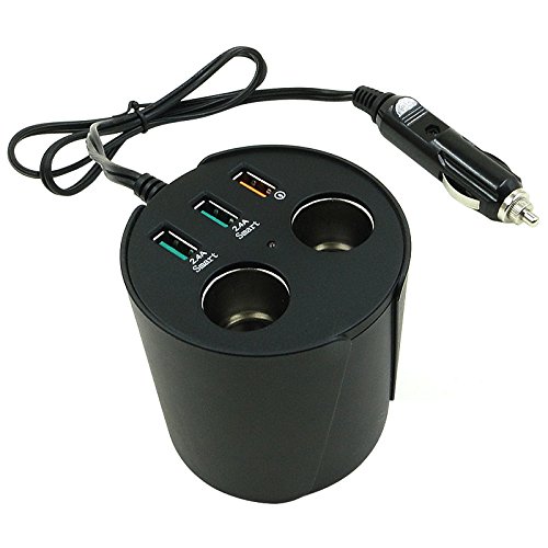 -. Title : Car Cup Charger,KOMRT Quick Charge Car Charger with 3 USB Ports + 2-Socket Cigarette Lighter Splitter 12V/24V Power Adapter for iPhone, iPad, Android phone, Samsung, GPS