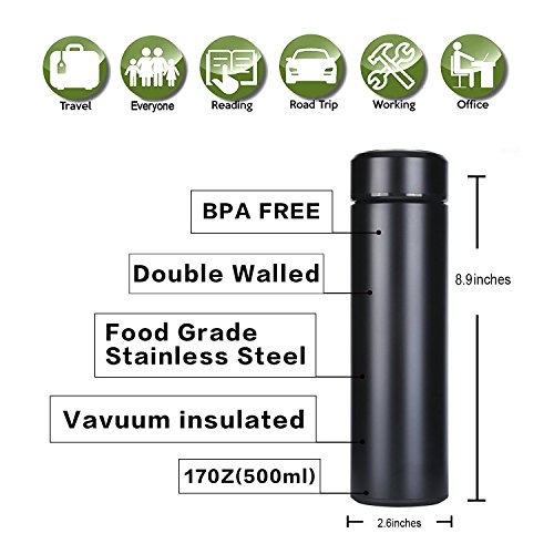 Insulationg Properties:The double vacuum insulated wall reduce air heat transfer and keep water hot for up to 24 hours and cold for 12 hours. Durable stainless steel interior and exterior withstand the demands of everyday use.