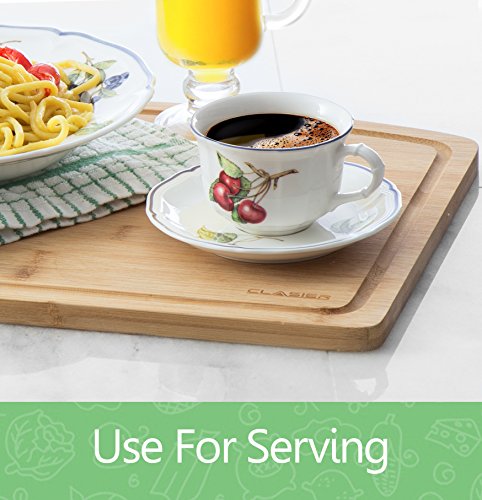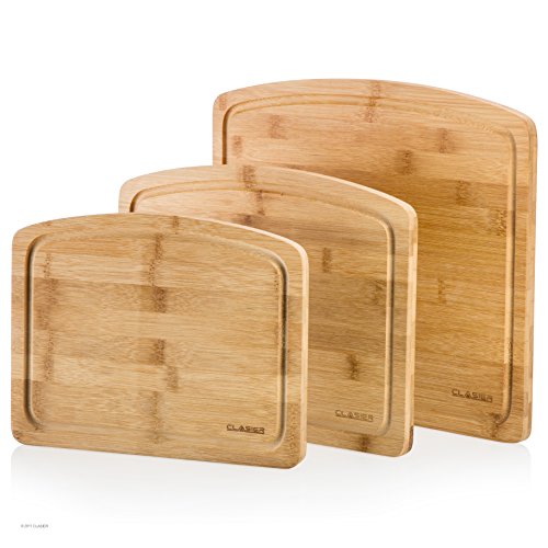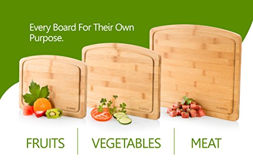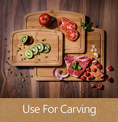 Clasier Genuine Bamboo Cutting Chopping Board 3 Piece Set | Anti-Bacterial & Anti-Microbial Wooden Board WithJuice Groove | For Dicing, Slicing & Serving Cheese, Meat, Veggies, Fruit, Bread & More