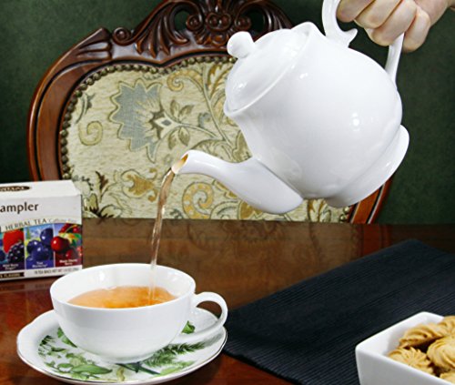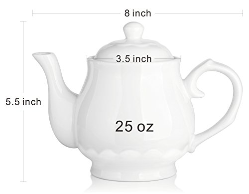 Color:White??|? Size:25 OZ Enjoy unwinding with a nice warm cup of tea after a long day? This DOWAN Teapot is large enough to brew 25 OZ worth. Constructed of beautiful white Earthenware, this pot has the look of a traditional DOWAN classic style teapot designed Versatile Stylish This beautiful ceramic tea pot would make a beautiful addition to any kitchen. Lid helps keeping tea warm while sitting. Teapot is dishwasher and microwave safe. Perfect for tea parties, everyday use, or a perfect gift for that special tea drinker.? Why Choose DOWAN® Porcelain Teapot ? Porcelain ware is resistant to chip and stain, dishwasher and oven safe. Approved by FDA, SGS, Global Quality Inspection Standards for Ceramic Items. Without containing any chemical, they are non-toxic, more healthy than other materials. Best Gift Option It is packaged in a well wrapped box, a perfect gift for your friends and family on Housewarming, Wedding party, Mothers' Day, Fathers' Day, Birthday gift ,Christmas and New Year's Day. YOUR CONFIDENCE ASSURED - PEACE OF MIND GUARANTEE ?UPGRADED AFTER-SALES SERVICE - 1 YEAR WARRANTY ? 100% Satisfaction Guarantee Our 1 YEAR- break-and-chip warranty covers every piece of item we sell. You can easily reach us by directly replying our after-sales service letter (usually sent after you placed an order) if there emerges a product problem or if you're dissatisfied with the product. We promise we will take immediate and feasible actions to address the problem to your satisfaction. May the odds be ever in your life with DOWAN. 0 |