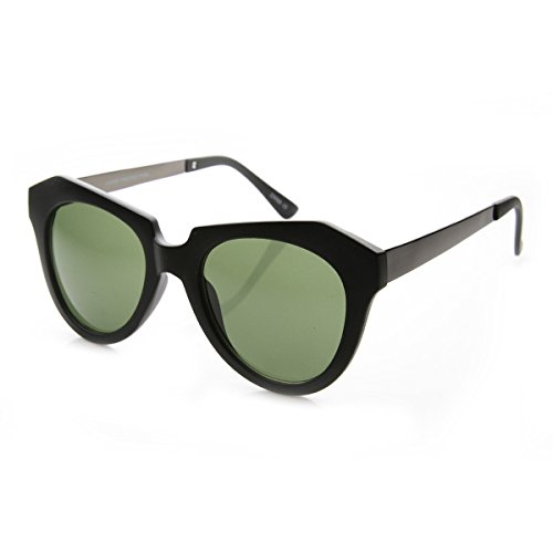 Designer inspired sunglasses that features modern geometrical curves with elegant metal arrows adorning the temples. A unique feminine style that combines modern and retro elements. Made with an acetate based frame, metal hinges and polycarbonate UV protected lenses. Lens Height:48mm Lens Width:50mm Bridge:18mm Frame Total:140mm