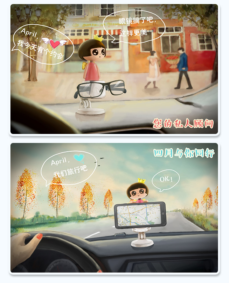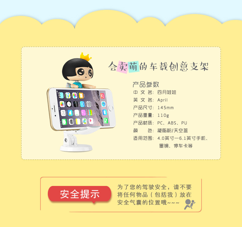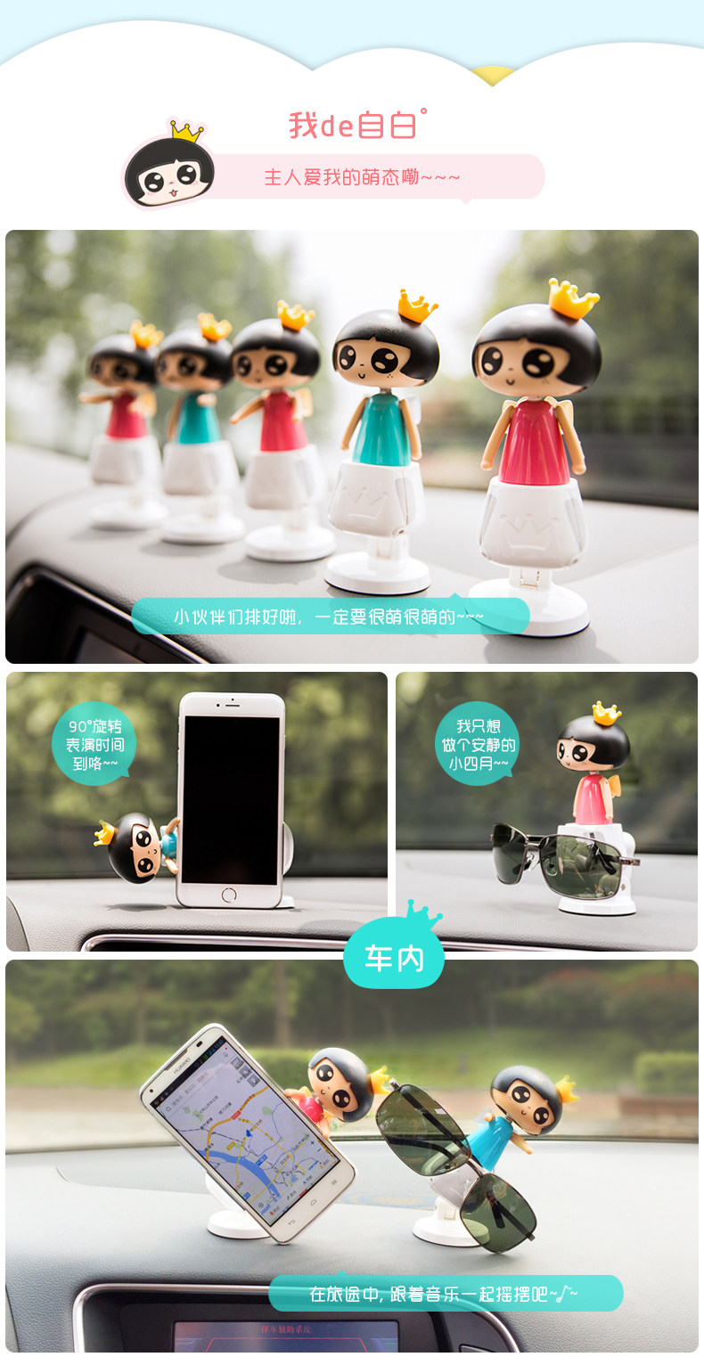 卡通摇头娃娃车载手机支架汽车用手机座多功能仪表台眼镜夹子