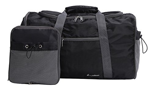 -. Feature : Expanded size: 19.68''L x 9.84''W x 11.02''H, Foldable size: 9.84''L x 11.02''H / Made of waterproof polyester, durable and tough gym bag. / Removable, adjustable and padded shoulder strap. / Independent shoes compartment, waterproof lining, separated shoes from clothes. / Small foldable size, easy to carry and storage, suitable for gym, travel, camping, etc.