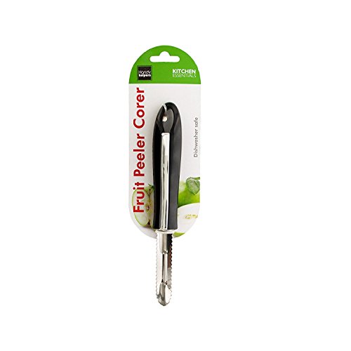 - Fruit Peeler/Corer is carefully manufactured of stainless metal head with a serrated edge with in black handle. Measures 8-inch.