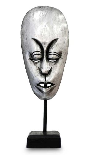 NOVICA Decorative Lombok Large Albesia Wood Mask with Stand, Metallic 'Lombok Man II'