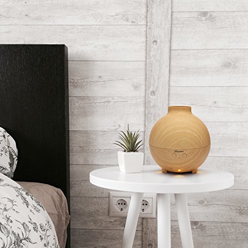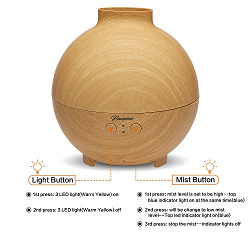 - 【Classy & convenient】Wood grain design. Two stage high / low mist mode. Easy snap on cap. Large 600ml tank for 10 - 18 hours operation time. Covers up to 400 sq ft area.