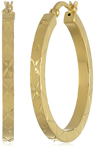 Goldtone Finish Silver Square Tube Hoop Earrings