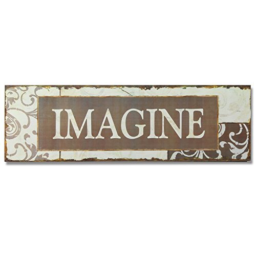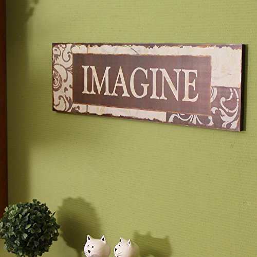 Adeco Decorative Wood Wall Hanging Sign Plaque, "Imagine" Brown Off White Home Decor