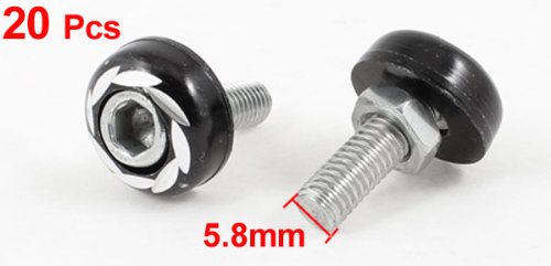 - Feature : Product Name : License Plate Bolt Screws;Thread Diameter : 5.8mm/ 0.23" / Nut Diameter : 10mm/ 0.39";Total Size : 18 x 25mm/ 0.71" x 0.98" (D*L) / Color : Black, Silver Tone;Material : Alloy / Weight : 183g / Package Content : 20 x License Plate Bolt Screws