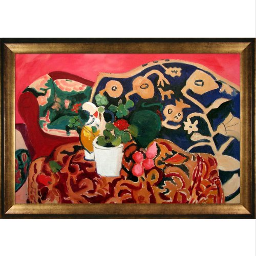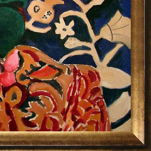 Hand painted oil reproduction of a famous Matisse painting, Spanish Still Life . Originally done in 1910, today it has been carefully recreated detail by detail, color by color to near perfection. Like Picasso, Matisse is known to be one of the foremost artists of modern times. After a short bout of illness, Matisse gave up the study of law to take up painting. He was one of the pioneers of Fauvism, a style utilizing vivid color for its sensual and decorative value. This work of art has the same emotions and beauty as the original. Why not grace your home with this reproduced masterpiece? It is sure to bring many admirers! Frame Description: Athenian Gold Frame - Antique Gold Finish - Eco Friendly.Feature