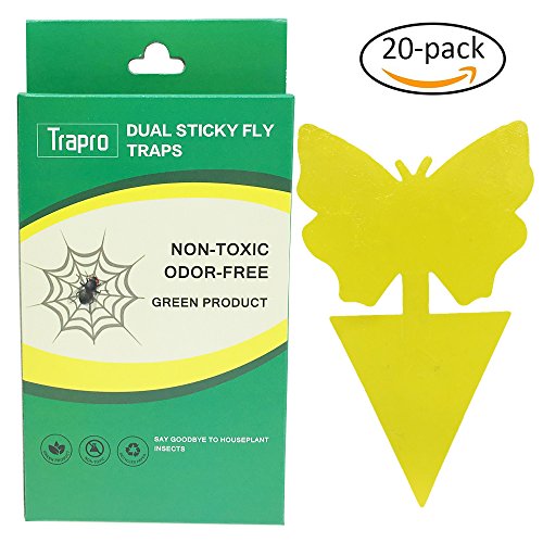 Trapro Dual Sticky Fly Traps for Houseplant Fly Insect Control, Non-Toxic and Eco-Friendly - 20 Pack / Butterfly Shape