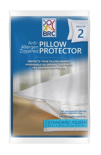 Revitalize your pillow or prolong the life of a new one by covering it with a BRC Hypoallergenic Zippered Pillow Protector Cover. It is one of the most effective barriers against pet dander, dust mites, bed bugs and other harmful allergens. Easy Care; wachine wash