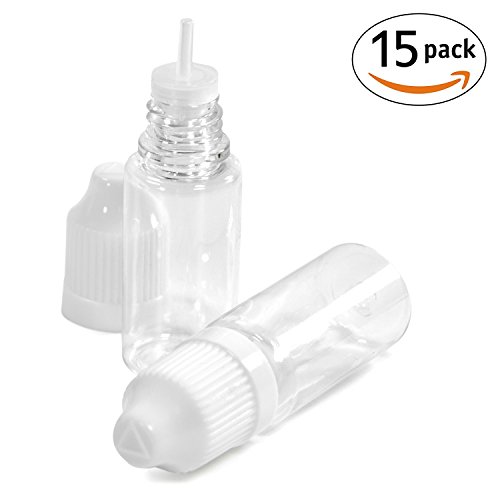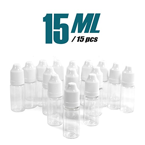 Mini Refill Clear Empty Soft Plastic Squeeze Bottle with Childproof Cap - Travel Size Squeezer Lab Dropper for Most Liquids (15ml / 15 pack)