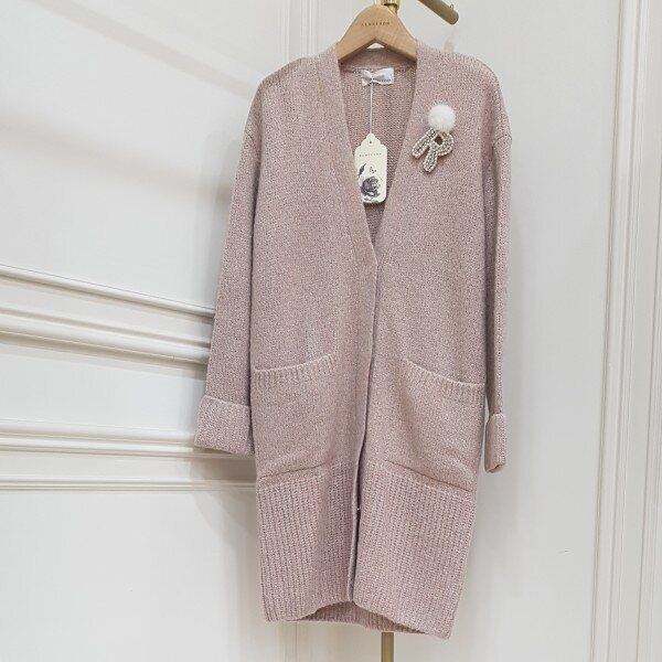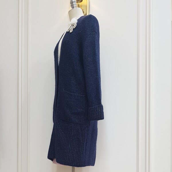 트렌드로 보여지는 메탈느낌의 원사를 가볍게 걸칠수 있는 롱가디건 입니다. 이태리 수입사 사용