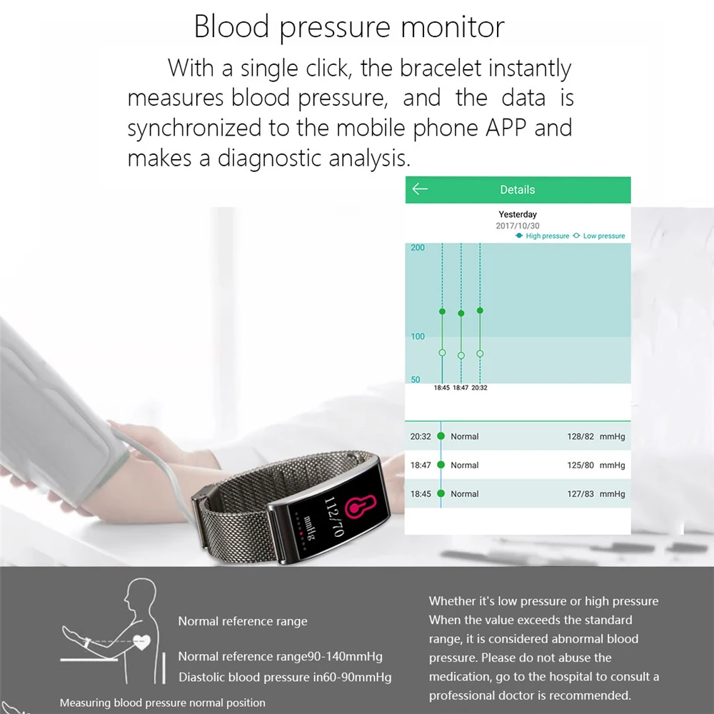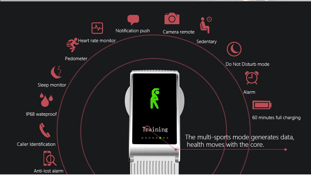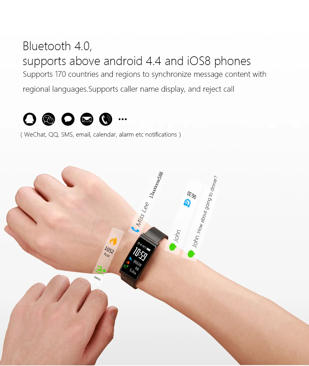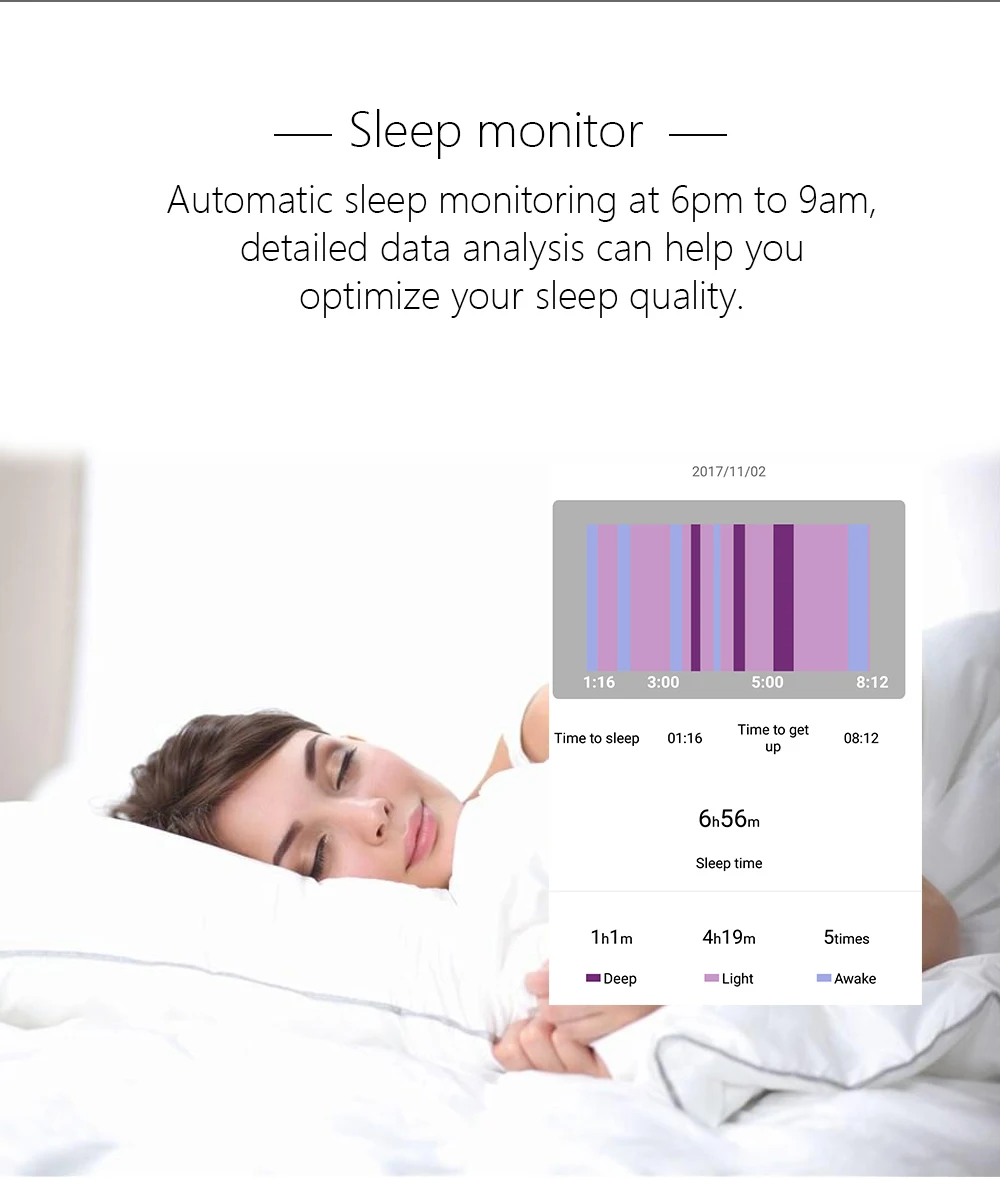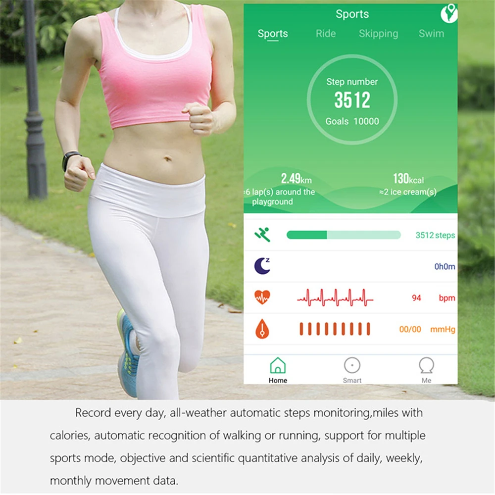 Function:Blood Pressure,Passometer,Sleep Tracker,Heart Rate Tracker,Alarm Clock,Remote Control,Activity Tracker,Fitness Tracker,Message Reminder,Call Reminder
